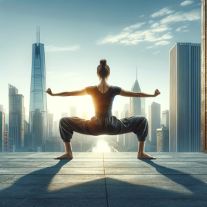 Outre la force et la flexibilité, la Position du Cheval est excellente pour améliorer la posture et l’équilibre. En maintenant cette position, vous apprenez à distribuer votre poids de manière égale sur vos deux jambes, tout en gardant le dos droit. Cette habitude se transfère ensuite dans votre posture quotidienne, améliorant ainsi votre alignement corporel général.
